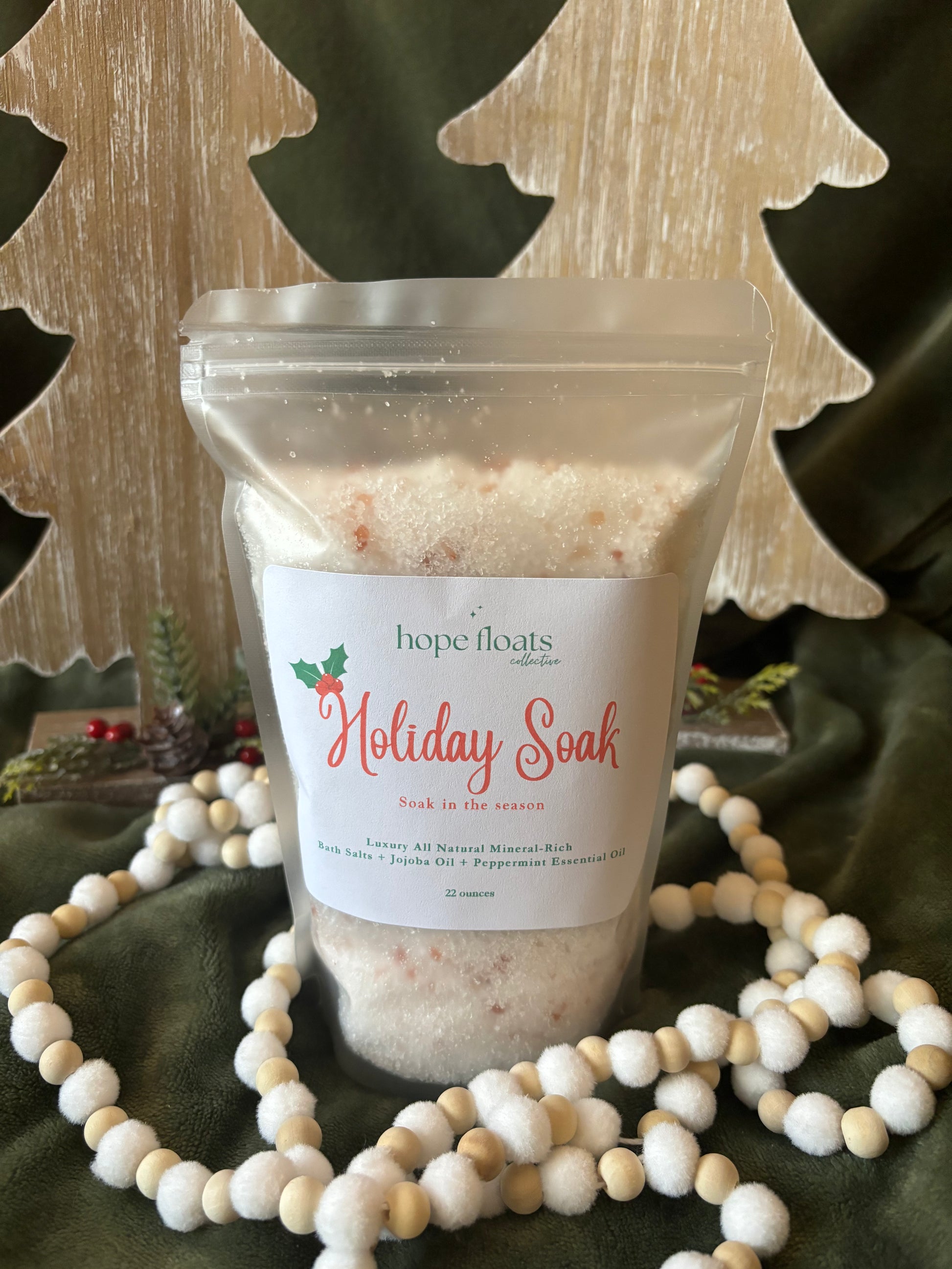 Soak in the holidays with this all-natural mineral rich blend of Epsom salt, Dead Sea salt, Jojoba oil and peppermint essential oil. This one will surely get you in the holiday spirit and leave your skin feeling so soft!